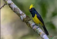 冕雀:共有4个亚种。体长20-21厘米,体重34-49克。具蓬松的黄色长型冠羽。雌鸟似雄鸟,但喉及胸深橄榄黄色,上体沾橄榄色。不会被误认的体大的黄色及黑色山雀。混群栖于原始林及次生林的林冠层,…全部>>