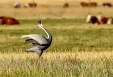 白枕鹤体形与丹顶鹤相似,略小于丹顶鹤,而大于白头鹤。上体为石板灰色。尾羽为暗灰色,末端具有宽阔的黑色横斑。取食时主要用喙啄食,或用喙先拨开表层土壤,然后啄食埋藏在下面的种子和根茎,边走边啄食。…全部>>