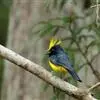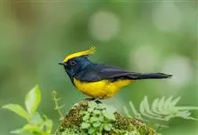 冕雀:共有4个亚种。体长20-21厘米,体重34-49克。具蓬松的黄色长型冠羽。雌鸟似雄鸟,但喉及胸深橄榄黄色,上体沾橄榄色。不会被误认的体大的黄色及黑色山雀。混群栖于原始林及次生林的林冠层,…全部>>