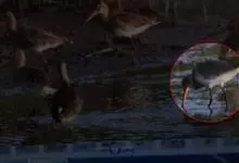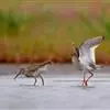 红脚鹬:体长28厘米,上体褐灰,下体白色,胸具褐色纵纹。飞行时腰部白色明显,次级飞羽具明显白色外缘。尾上具黑白色细斑。虹膜黑褐色,嘴长直而尖,基部橙红色,尖端黑褐色。脚较细长,亮橙红色,…全部>>