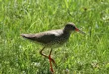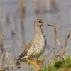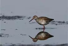 红脚鹬:体长28厘米,上体褐灰,下体白色,胸具褐色纵纹。飞行时腰部白色明显,次级飞羽具明显白色外缘。尾上具黑白色细斑。虹膜黑褐色,嘴长直而尖,基部橙红色,尖端黑褐色。脚较细长,亮橙红色,…全部>>