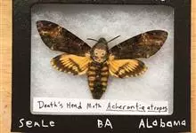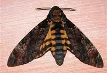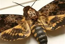 鬼脸天蛾,是鳞翅目天蛾科面形天蛾属动物。成虫翅展100~125毫米,体黑褐色;胸背有骷髅形斑纹;卵圆球形,直径约2毫米,淡黄绿色,表面光滑;老熟幼虫体长70~90毫米,蛹体长约56毫米;前翅为褐色,…全部>>