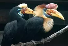 马来犀鸟是一种犀鸟。因嘴形粗厚而直,嘴上通常具盔突,形似犀牛角而得名。并趾型,外趾和中趾基部有三分之二互相并合,中趾与内趾基部也有些并合,善于攀援。每年入春后约5~6月由群居转为成对,选择高大树干距…全部>>