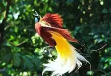 大极乐鸟是极乐鸟属中最大的鸟种。成年雄鸟体长可达到43厘米,雌性可达35厘米。雄鸟的额、颊、喉等墨绿色;头、颈黄色;上体暗赤栗色;腹部葡萄红色,胁部有长饰羽,其基部橙黄,中部黄色,…全部>>