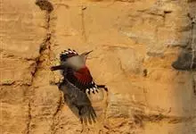 红翅旋壁雀:体重15-23克,体长120-178毫米。是一种体型略小的鸟类。尾短而嘴长,翼具醒目的绯红色斑纹。飞羽黑色,外侧尾羽羽端白色显著,初级飞羽两排白色点斑飞行时成带状。繁殖期雄鸟脸及喉黑色,…全部>>