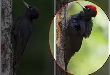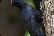 白腹黑啄木鸟,是啄木鸟科、黑啄木鸟属的中型鸟类,体长43-46厘米,头顶具长的红色羽冠,颚纹亦为红色,其余头、颈、胸和上体黑色,腰和腹白色,飞翔时白色腋羽和翅下覆羽亦明显可见。雌鸟头顶黑色,…全部>>