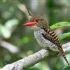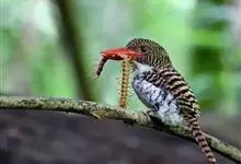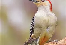 红腹啄木鸟成年雄鸟头项有红帽,翅膀和上体是黑白相间的斑纹状羽毛,腹部有一片红羽毛。头亦大,但颈较长,嘴强硬而直,呈凿形,鼻孔裸露;尾羽羽干大都硬挺且尖,尾羽12片,初级飞羽9片。头骨为蜥腭型,…全部>>