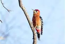 棕腹啄木鸟为啄木鸟科,啄木鸟属是中等体型的鸟类,体长约20厘米。头顶部具红色斑带。脚强健,有趾4个,其中2个向前,2个向后,各趾的趾端均具有锐利的爪,巧于攀登树木。尾羽的羽干刚硬如棘,…全部>>