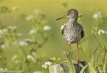 红脚鹬:体长28厘米,上体褐灰,下体白色,胸具褐色纵纹。飞行时腰部白色明显,次级飞羽具明显白色外缘。尾上具黑白色细斑。虹膜黑褐色,嘴长直而尖,基部橙红色,尖端黑褐色。脚较细长,亮橙红色,…全部>>