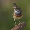 蓝点颏亦称“蓝喉歌鸲”,通称蓝靛颏儿。身体大小和麻雀相似,体长12-13厘米,体重17-18克。头部、上体主要为土褐色。眉纹白色。尾羽黑褐色,基部栗红色。颏部、喉部辉蓝色,下面有黑色横纹。下体白色。…全部>>