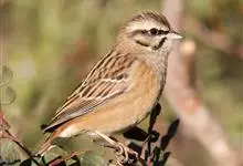 山麻雀:小型鸟类,体长13-15厘米。雄鸟上体栗红色,背中央具黑色纵纹,头棕色或淡灰白色,颏、喉黑色,其余下体灰白色或灰白色沾黄。雌鸟上体褐色具宽阔的皮黄白色眉纹,颏、喉无黑色。…全部>>