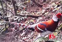 黄腹角雉:是鸟纲、雉科中国特产的一种鸟类。体长约50-65厘米。雄鸟上体栗褐色,满布具黑缘的淡黄色圆斑。头顶黑色,具黑色与栗红色羽冠。飞羽黑褐带棕黄斑。下体几纯棕黄,因腹部羽毛呈皮黄色,…全部>>