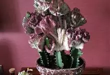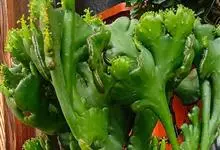 麒麟掌,是大戟科大戟属多年生植物。为金刚纂的带化变异变种。麒麟掌的株乳汁丰富;它的茎圆柱状,上部多分枝,绿色;叶互生,稀少,常生于嫩枝顶端脊上,倒卵形、倒卵状长圆形或匙形,顶端钝圆,具小凸尖,全缘,…全部>>