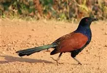 褐翅鸦鹃,是鹃形目鸦鹃科鸦鹃属的鸟类。褐翅鸦鹃的身体为黑色;头颈和胸带蓝紫色金属光泽并具黑亮的羽干纹,下胸至腹部泛金属绿光泽;两翼和肩部为棕栗色,外侧飞羽具暗色羽端,尾羽闪铜绿色光泽;虹膜赤红色,…全部>>