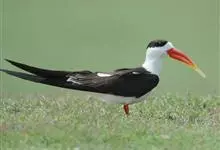 剪嘴鸥:是鸟纲、剪嘴鸥科的中型水鸟,体长40-43厘米。嘴粗,长而侧扁,基部较宽。下嘴较上嘴显著为长。嘴的颜色为橙红色,尖端黄色,脚短,红色。头顶至枕黑色。嘴基、颊、后颈和整个下体白色,上体和翅黑褐色,…全部>>