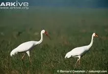 白枕鹤体形与丹顶鹤相似,略小于丹顶鹤,而大于白头鹤。上体为石板灰色。尾羽为暗灰色,末端具有宽阔的黑色横斑。取食时主要用喙啄食,或用喙先拨开表层土壤,然后啄食埋藏在下面的种子和根茎,边走边啄食。…全部>>