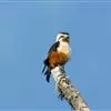红腿小隼是隼形目隼科小隼属鸟类。红腿小隼前额白色,眼上有一宽阔的白色眉纹,往后经耳覆羽与上背白色领圈相连颊和耳覆羽白色,从眼前开始有一粗的黑色贯眼纹经眼斜向下到耳;其余上体包括翅和尾黑色,…全部>>