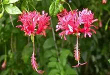 吊灯扶桑 Hook. f.)为锦葵科木槿属的常绿灌木。高达3米;小枝常下垂;叶椭圆形或长圆形,先端尖或短渐尖,基部楔形;花梗细,无毛或具纤毛,中部具节;蒴果长圆柱形;花期全年。因似灯笼高挂,…全部>>