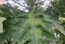 番木瓜,番木瓜科番木瓜属的常绿软木质小乔木,高达10米,具有乳汁;茎不分枝或有时于损伤处分枝;叶大且聚生于茎顶,近似盾形,叶柄中空;花单性或两性,有些品种雄株偶尔生两性花或雌花,…全部>>