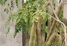 辣木,是辣木科辣木属的乔木。树皮软木质,枝有明显的皮孔及叶痕,小枝有短柔毛;叶通常为羽状复叶,在羽片的基部具线形或棍棒状稍弯的腺体;花序广展;蒴果细长,每瓣有肋纹;种子近球形。花期全年,果期6-12月。…全部>>