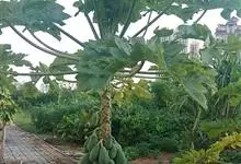 番木瓜,番木瓜科番木瓜属的常绿软木质小乔木,高达10米,具有乳汁;茎不分枝或有时于损伤处分枝;叶大且聚生于茎顶,近似盾形,叶柄中空;花单性或两性,有些品种雄株偶尔生两性花或雌花,…全部>>