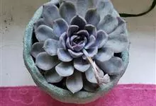 蓝石莲是景天科、拟石莲花属的多肉植物。茎部粗壮,成熟植株茎部木质化。叶片莲座型密集排列,株径不会很大,叶片相对较薄,常年绿色,表面布有白色粉末,中部凹陷,呈倒水滴状。叶尖较尖,叶缘光滑无褶皱,…全部>>