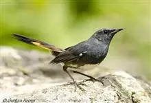 红尾水鸲是雀形目鹟科水鸲属鸟类,又称蓝石青儿、石燕、溪红尾鸲等。雄鸟主体均为暗灰蓝色,额基和眼先深灰黑色;翼暗褐色,外翈羽缘蓝灰色;虹膜褐色,喙黑色,脚肉褐色至黑褐色。雌鸟上体为略泛蓝的暗灰褐色,…全部>>