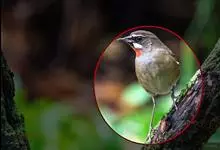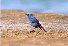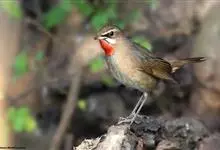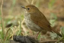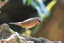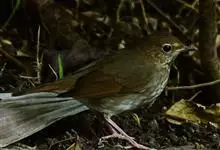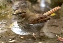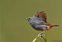 红尾歌鸲:体长13-15厘米。上体橄榄褐色。尾羽棕栗色,眼先和颊黄褐色,眼周淡黄褐色。下体颏、喉污灰白色,微沾皮黄色,胸部具橄榄色扇贝形纹,两胁橄榄灰白色,腹部和尾下覆羽与颏、喉同。尾部棕色。…全部>>