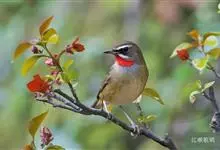 红点颏:是鸟纲、鹟科的鸣禽。又名西伯利亚歌鸲。体长14-17厘米,体重16-27克。雄鸟头部、上体主要为橄榄褐色。眉纹白色。颏部、喉部红色,周围有黑色狭纹。胸部灰色,腹部白色。雌鸟颏部、喉部不呈赤红色,…全部>>