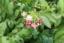 使君子 Jongkind)是使君子科、使君子属攀援灌木,叶对生,椭圆形,两面均被灰白色柔毛。穗状花序,倒挂下垂。花期夏秋。果有五棱,熟时黑色,种子白色。分布于印度、缅甸、菲律宾和中国。喜温润,深根性,…全部>>