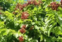千果榄仁是使君子科诃子属植物,常绿乔木,高可达35米,小枝圆柱状,叶对生,厚纸质;叶片长椭圆形,侧脉两面明显,叶柄较粗,大型圆锥花序,顶生或腋生,花极小而数,两性,红色,小苞片三角形,宿存;萼筒杯状…全部>>