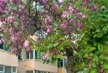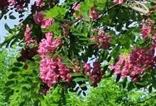 红花刺槐是豆科刺槐属的植物。其干皮深纵裂;枝具托叶刺,羽状复叶互生,叶片卵形或长圆形,具芒尖;基部圆形。花两性;总花序下垂;花冠粉红色,芳香;果条状长圆形,腹缝有窄翅。花期4~5月,果期9~10月。…全部>>