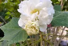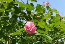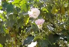 木芙蓉,锦葵科木槿属落叶灌木或小乔木。小枝上有细绒毛;叶片为卵状心形,托叶为披针形,常早落;花单生,花萼为钟形,花冠初为白色或淡红色,后逐渐变为深红色;果实为扁球形,有淡黄色的毛附着。花期8到10月。…全部>>