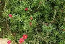 大花马齿苋:一年生草本,高10-30厘米。茎平卧或斜升,紫红色,多分枝,节上丛生毛。叶密集枝端,较下的叶不规则互生,叶片细圆柱形,无毛。花单生或数朵簇生枝端,直径2.5-4厘米,…全部>>