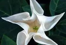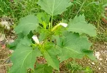 曼陀罗,茄科曼陀罗属一年生大型草本植物,全株光滑。有臭气;叶呈广卯形,边缘具不规则波状浅齿裂;花单生于枝杖间或叶腋,直立,有短梗;花萼是筒状裂片三角形,颜色为白色或淡紫色;果实为蒴果卵状,…全部>>