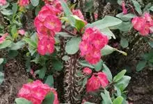 虎刺梅:别称铁海棠,是蔓生灌木植物。茎多分枝,长60-100厘米,直径5-10毫米,具纵棱,密生硬而尖的锥状刺,刺长1-1.5厘米,直径0.5-1.0 毫米,常呈3-5列排列于棱脊上,呈旋转。叶互生…全部>>