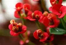 铁海棠为大戟科大戟属蔓生灌木植物;茎多分枝,具纵棱,呈旋转状;叶互生,通常集中于嫩枝上;每个花序基部边缘具微小的红色尖头;苞叶先端圆且具小尖头,无柄,上面鲜红色,下面淡红色;苞片丝状;子房光滑无毛,…全部>>