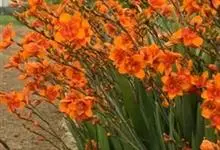 雄黄兰是鸢尾科雄黄兰属多年生草本植物。雄黄兰具扁球径,叶多基生,剑形;花茎由多花给成疏散的穗状花序,花冠漏斗状,深橙红色;蒴果。 花期7-8月,果期8-10月 。雄黄兰因橘红色的花与雄黄颜色相似而得名。…全部>>