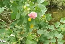 木芙蓉,锦葵科木槿属落叶灌木或小乔木。小枝上有细绒毛;叶片为卵状心形,托叶为披针形,常早落;花单生,花萼为钟形,花冠初为白色或淡红色,后逐渐变为深红色;果实为扁球形,有淡黄色的毛附着。花期8到10月。…全部>>