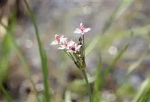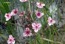 花蔺,为花蔺科花蔺属多年生水生草本。根茎粗壮横生。叶基生,上部伸出水面,线形,三棱状,基部成鞘状。 花:花茎圆柱形,直立,有纵纹。花两性,成顶生伞形花序。外轮花被3,带紫色,宿存;内轮花被3,淡红色…全部>>
