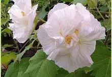 木芙蓉,锦葵科木槿属落叶灌木或小乔木。小枝上有细绒毛;叶片为卵状心形,托叶为披针形,常早落;花单生,花萼为钟形,花冠初为白色或淡红色,后逐渐变为深红色;果实为扁球形,有淡黄色的毛附着。花期8到10月。…全部>>