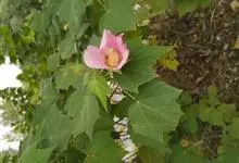 木芙蓉,锦葵科木槿属落叶灌木或小乔木。小枝上有细绒毛;叶片为卵状心形,托叶为披针形,常早落;花单生,花萼为钟形,花冠初为白色或淡红色,后逐渐变为深红色;果实为扁球形,有淡黄色的毛附着。花期8到10月。…全部>>