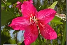朱槿,锦葵科木槿属的常绿灌木,叶子呈阔卵形或狭卵形,边缘具粗齿;花生于上部叶腋间,常下垂,花冠呈漏斗形且为玫瑰红色或淡红、淡黄等色,花瓣呈倒卵形,先端圆;蒴果为卵形,平滑无毛且有喙;花期全年。它的名称,…全部>>