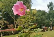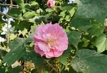 木芙蓉,锦葵科木槿属落叶灌木或小乔木。小枝上有细绒毛;叶片为卵状心形,托叶为披针形,常早落;花单生,花萼为钟形,花冠初为白色或淡红色,后逐渐变为深红色;果实为扁球形,有淡黄色的毛附着。花期8到10月。…全部>>