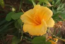 吊灯扶桑 Hook. f.)为锦葵科木槿属的常绿灌木。高达3米;小枝常下垂;叶椭圆形或长圆形,先端尖或短渐尖,基部楔形;花梗细,无毛或具纤毛,中部具节;蒴果长圆柱形;花期全年。因似灯笼高挂,…全部>>