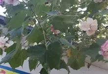 木芙蓉,锦葵科木槿属落叶灌木或小乔木。小枝上有细绒毛;叶片为卵状心形,托叶为披针形,常早落;花单生,花萼为钟形,花冠初为白色或淡红色,后逐渐变为深红色;果实为扁球形,有淡黄色的毛附着。花期8到10月。…全部>>