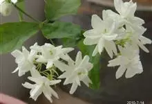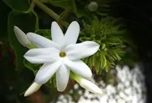 素馨花,木犀科素馨属多年生的攀援灌木植物。攀援灌木,小枝圆柱形,具棱或沟;叶对生,叶轴常具窄翼,小叶片卵形或长卵形;聚伞花序顶生或腋生,花序梗长,苞片线形,花萼无毛,裂片锥状线形,花冠白色,…全部>>