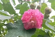 木芙蓉,锦葵科木槿属落叶灌木或小乔木。小枝上有细绒毛;叶片为卵状心形,托叶为披针形,常早落;花单生,花萼为钟形,花冠初为白色或淡红色,后逐渐变为深红色;果实为扁球形,有淡黄色的毛附着。花期8到10月。…全部>>