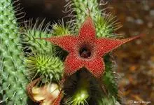 豹皮花 L.C.Leach)是马利筋亚科豹皮花属植物。肉质植物,茎亮绿色,几株簇生在一起,高约10厘米,状似仙人掌,四棱,棱稍钝,棱具粗厚软刺,光滑,绿色。无叶。…全部>>