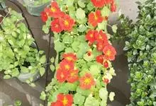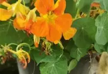 旱金莲是旱金莲科旱金莲属蔓生一年生草本植物。叶互生,叶柄向上扭曲,盾状,叶圆形,具波状浅缺刻,下面疏被毛或有乳点;花黄、紫、桔红或杂色,花托杯状,花瓣为圆形,边缘具缺刻;果实为扁球形;花果期6-10月,…全部>>